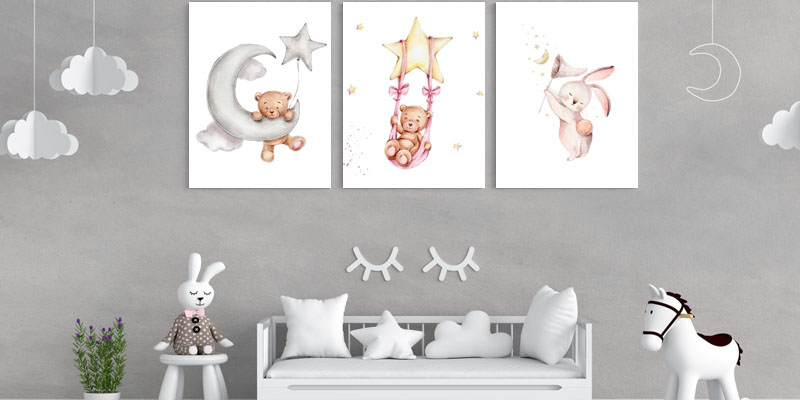 Qudro trittico decorativo per arredare la cameretta dei tuoi bambini, adatto per ogni tipo di arredamento.