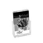 Porta biglietti da visita verticale da banco in materiale plastico trasparente. Disonibile nella misura 54 mm (L) x 85 mm (H) x 17 mm (P)