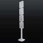 Struttura autoportante in alluminio e base in PVC, altezza 200 cm, con serie di cornici klik-klak sia monofacciali che bifacciali in formato A4.