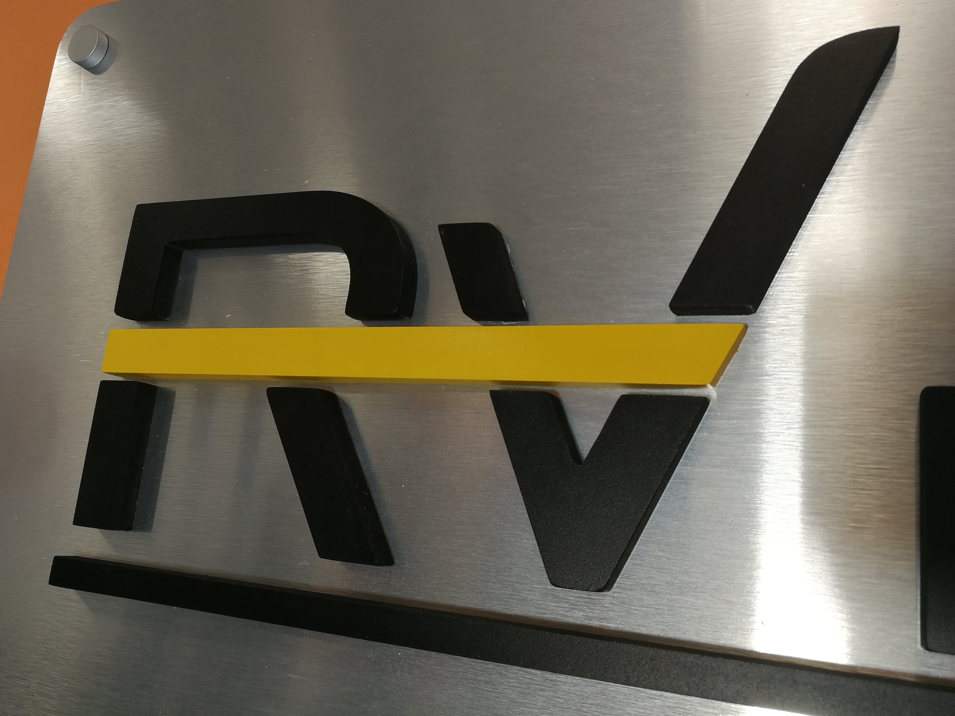 Pannello in alluminio e logo 3D in forex con distanziali su parete