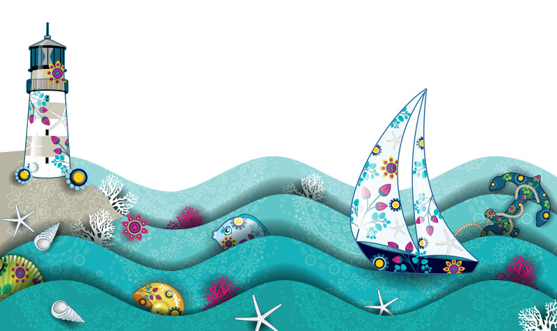 Isola nel mare con faro, adesivo applicabile su qualsiasi finitura. Un Pvc adesivo semplice da applicare per creare un ambiente da favola per i tuoi bambini.