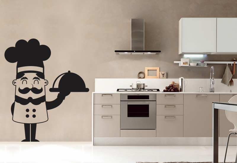 Cuoco e vassoio - sticker adesivi per decorare vetrine e pareti ristoranti e pizzerie