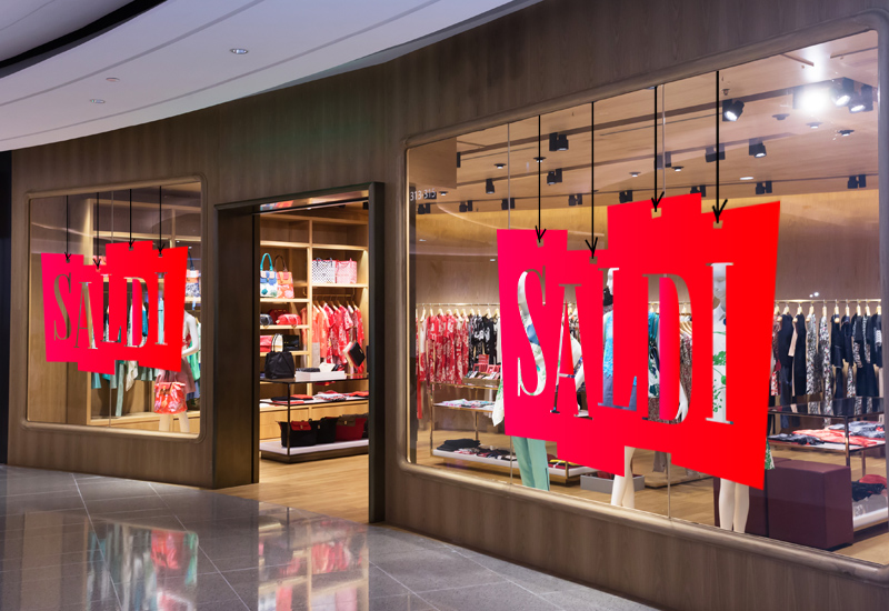 Vetrofania ideale per decorare nel periodo dei saldi la vetrina del tuo negozio.