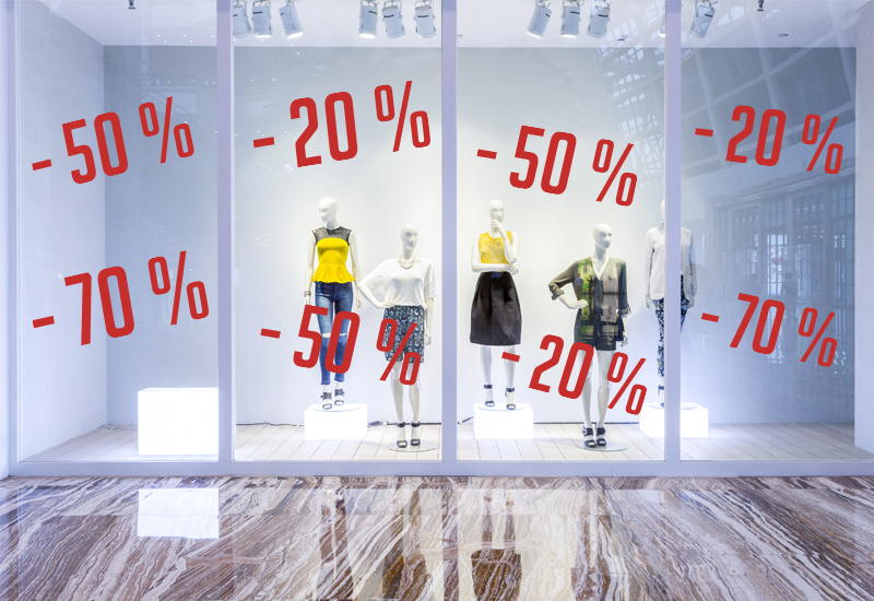 Vetrofania ideale per decorare nel periodo dei saldi la vetrina del tuo negozio.