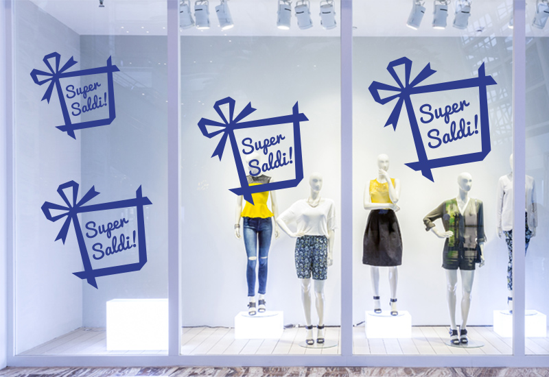 Vetrofania ideale per decorare nel periodo dei saldi la vetrina del tuo negozio.